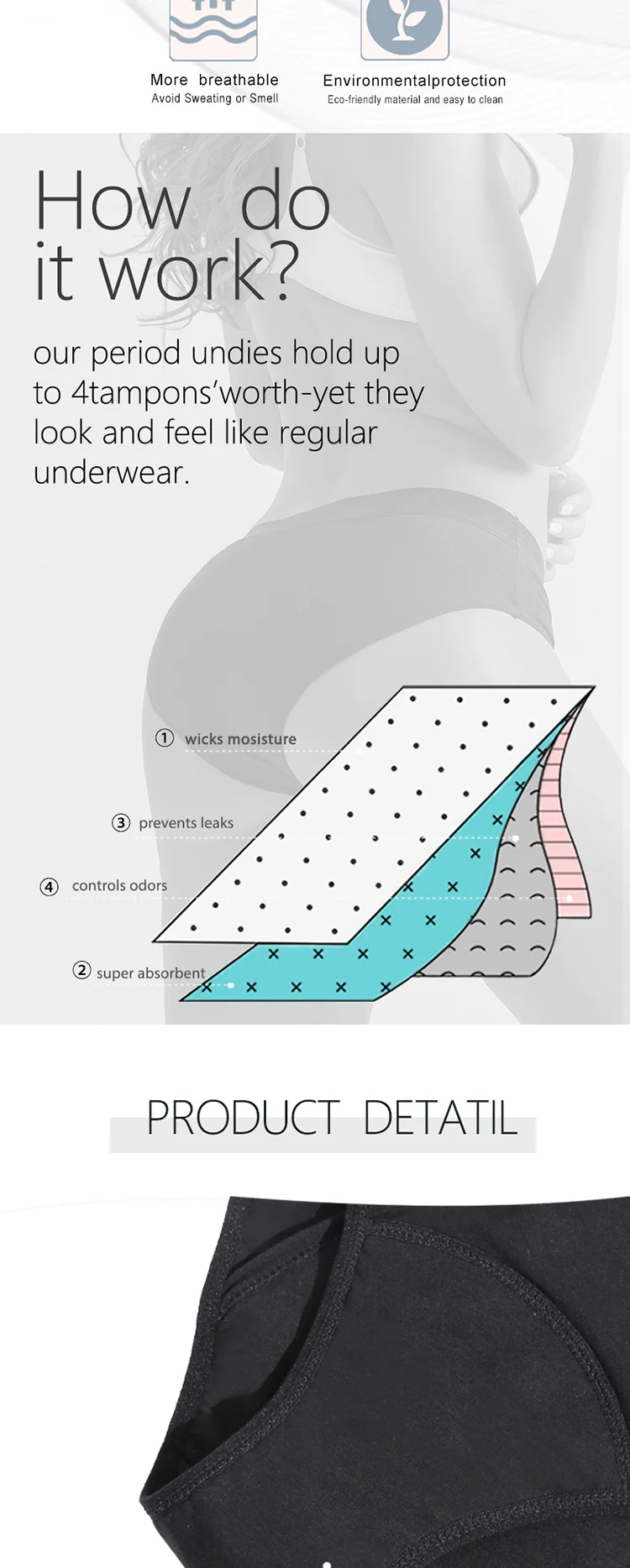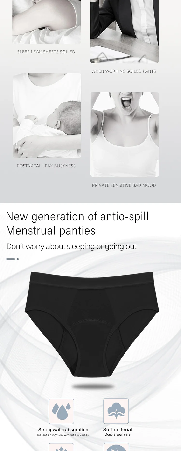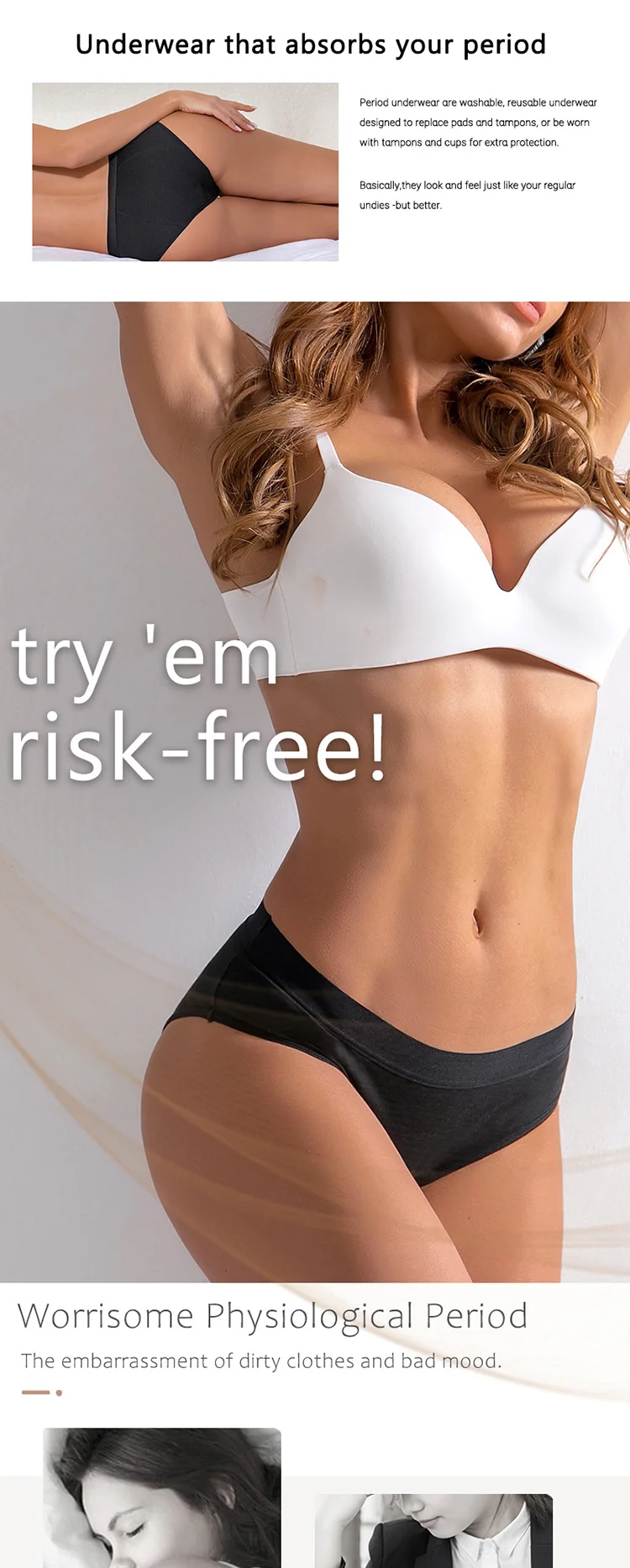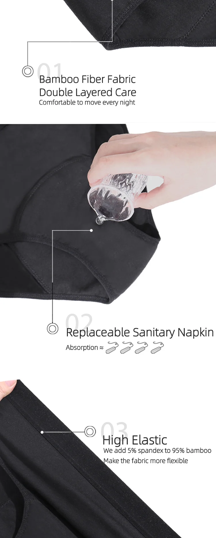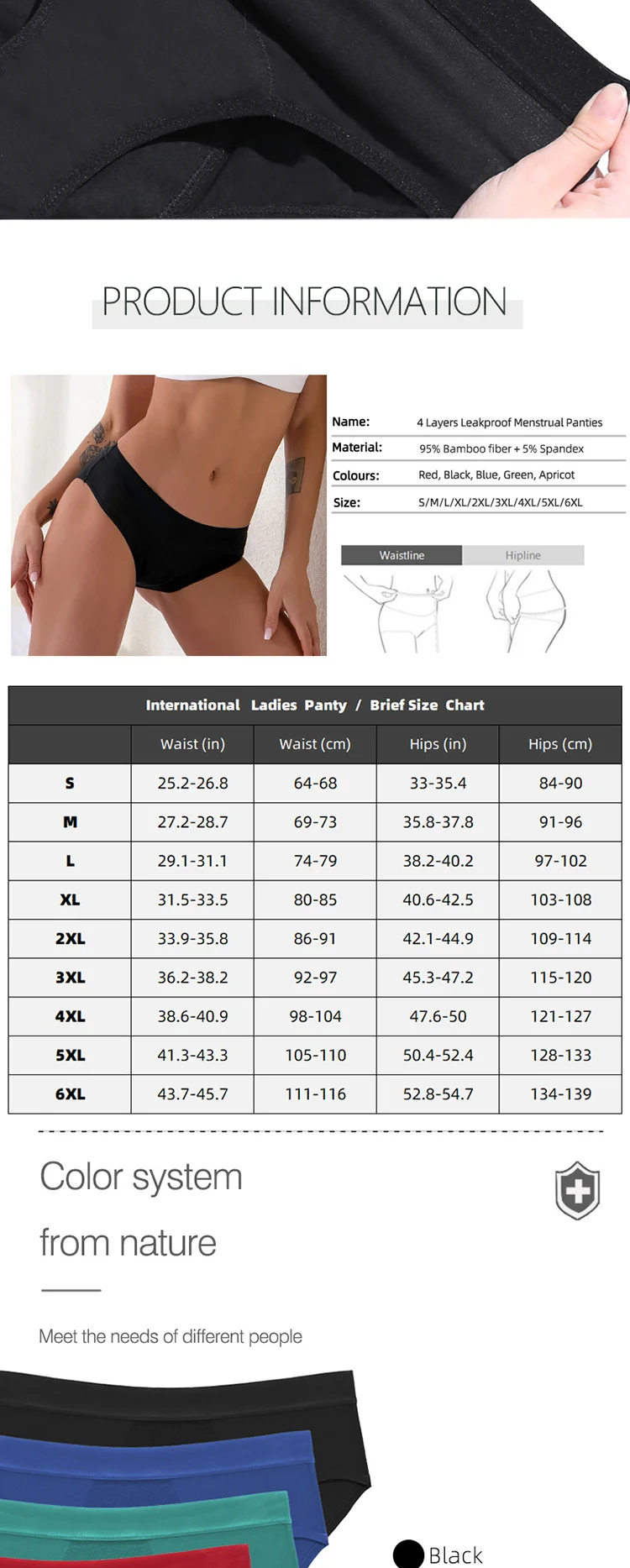 Large Size Sexy Multi-color Bamboo Fiber Four-layer Period Underwear Absorption Capacity Breathable and Leak-proof